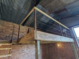 The barn flooded so drainage was encorporated as part of phase one to make the building sound, brickwork, roofing and a thorough deep clean and prep was undertaken, we then sourced and installed reclaimed materials to add two mezzanine floor areas, then oak internal doors with glazed panels for lighting and industrial style sliding doors were made onsite and fitted. Finally a full rewire to spec with galvanised surface mount fittings and reclaimed and overhauled lighting fitted.