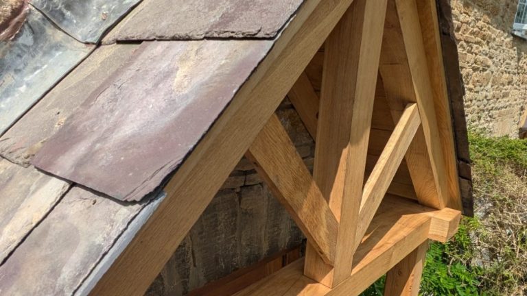 We sourced and supplied sustainably managed english Oak for this project and reused the existing slates and reinstated the leadwork, everything was planed to a smooth finish and oiled to bring out the character and grain of the Oak.